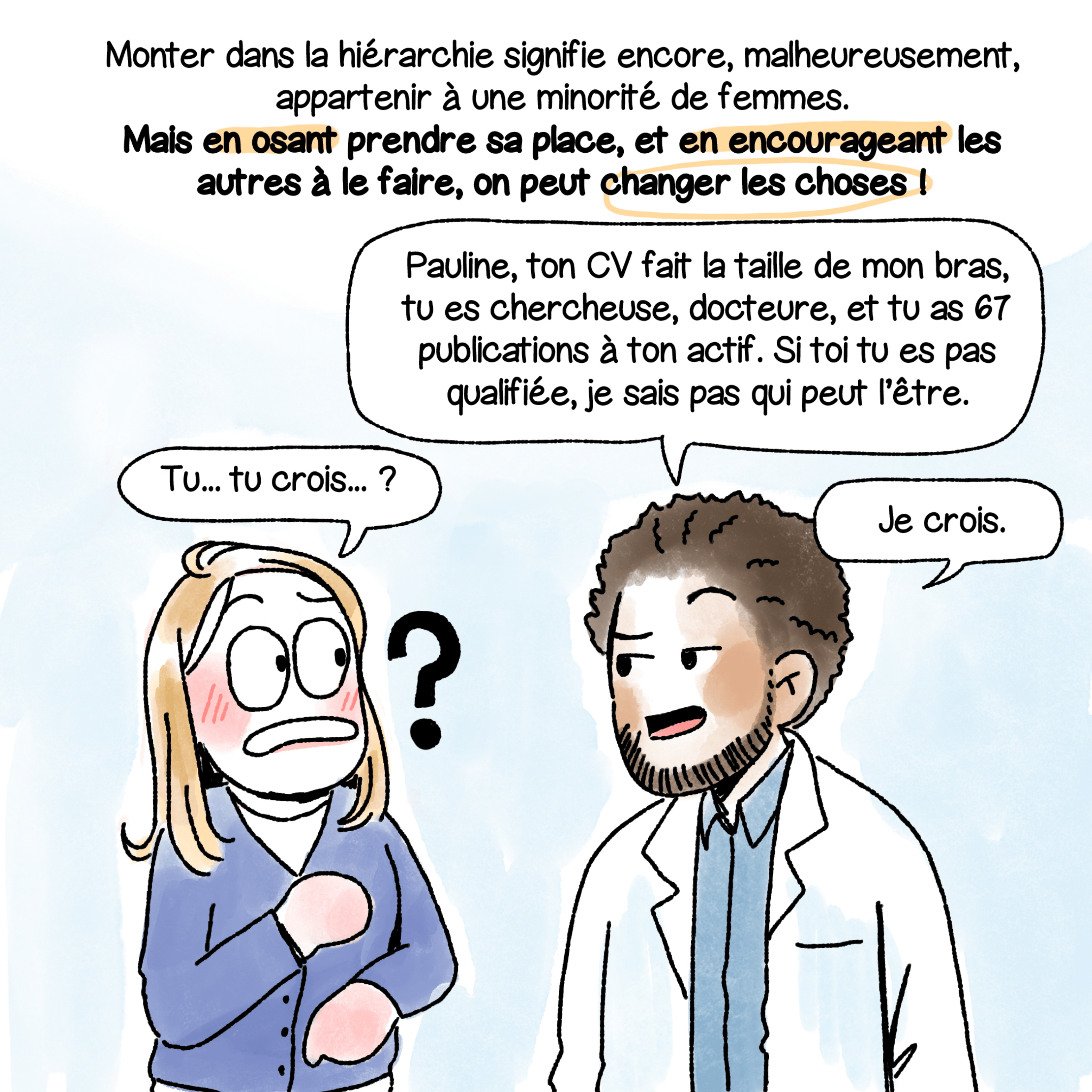 À travers des bandes dessinées numériques, des parcours inspirants sont mis en lumière, afin de montrer que les métiers de la recherche sont accessibles aux femmes, quels que soient leur âge et leur milieu.