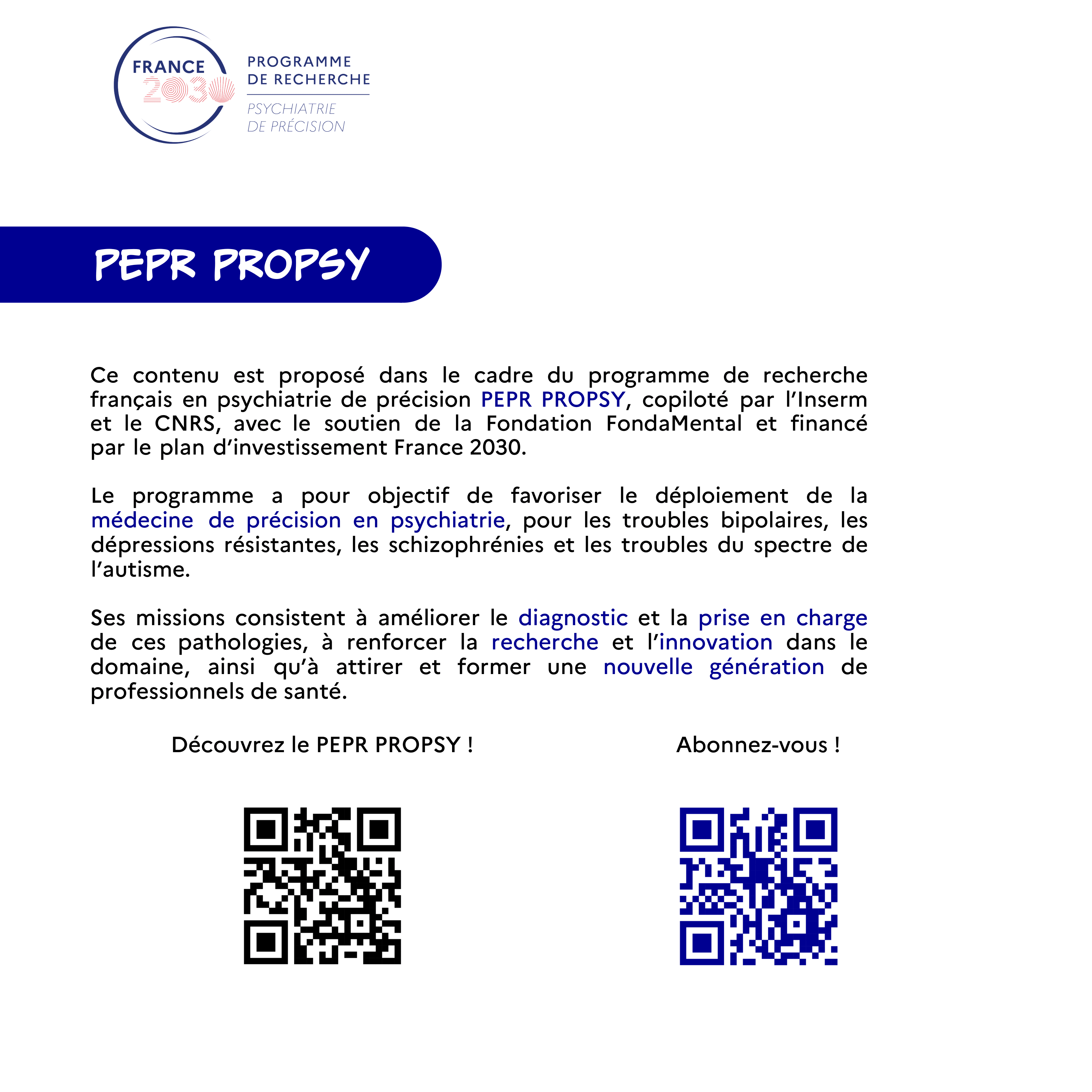 Il est financé par le PEPR PROPSY, programme soutenu par le plan d’investissement France 2030, copiloté par l’Inserm, le CNRS, avec l’appui de la Fondation FondaMental et de l’ANR.